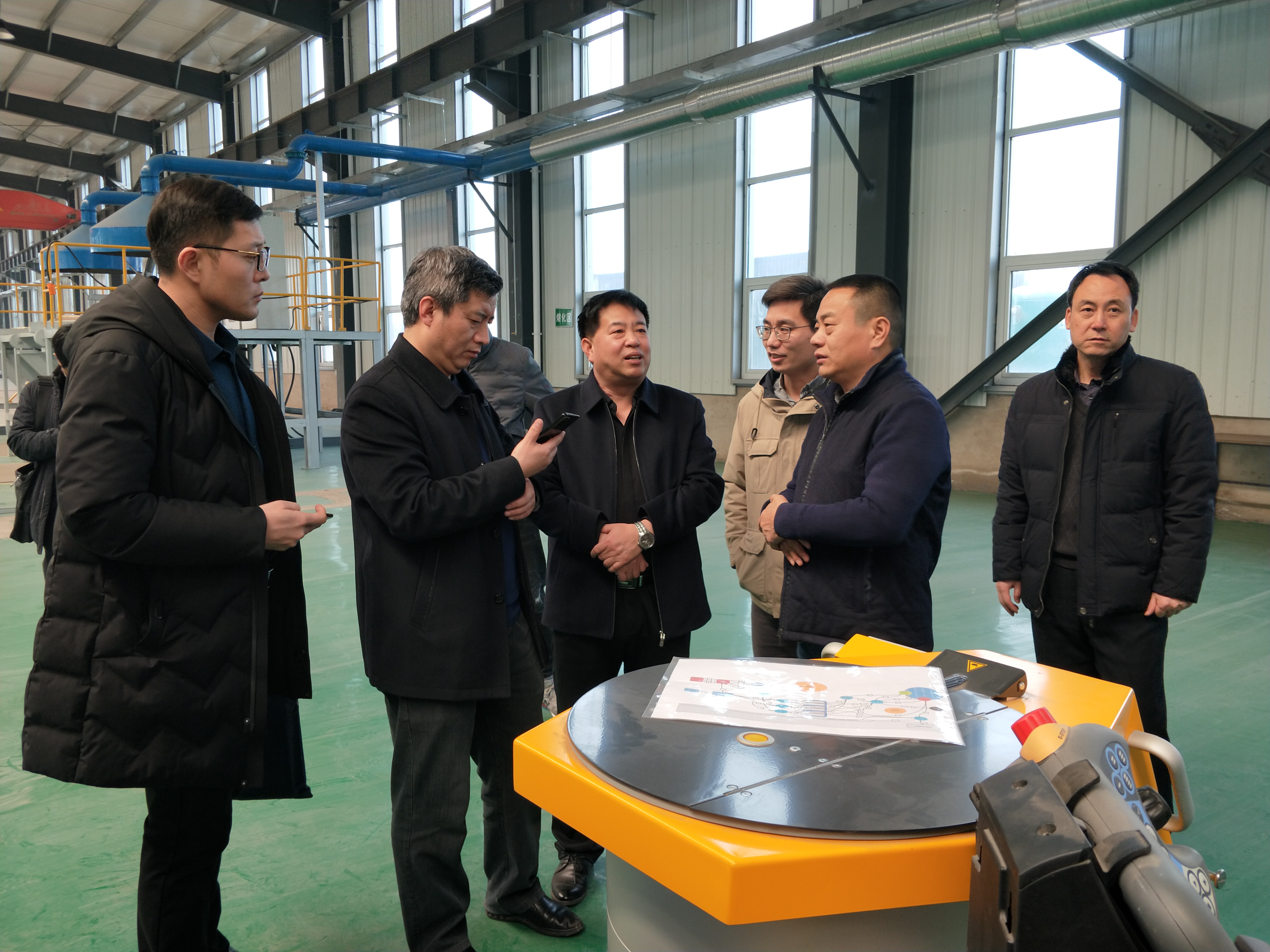 靳新遠(yuǎn)副局長一行在生產(chǎn)現(xiàn)場(chǎng)調(diào)研,參加座談會(huì)。